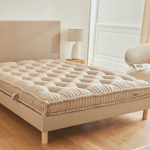Un futon est un matelas de couchage composé de couches de fibres (laine ou coton, selon le modèle) qui offrent un soutien ferme et une sensation très stable. Il convient particulièrement si vous aimez dormir sur une surface tonique, si vous recherchez une literie plus minimale, ou si vous souhaitez un couchage polyvalent (lit, banquette, chambre d’amis).