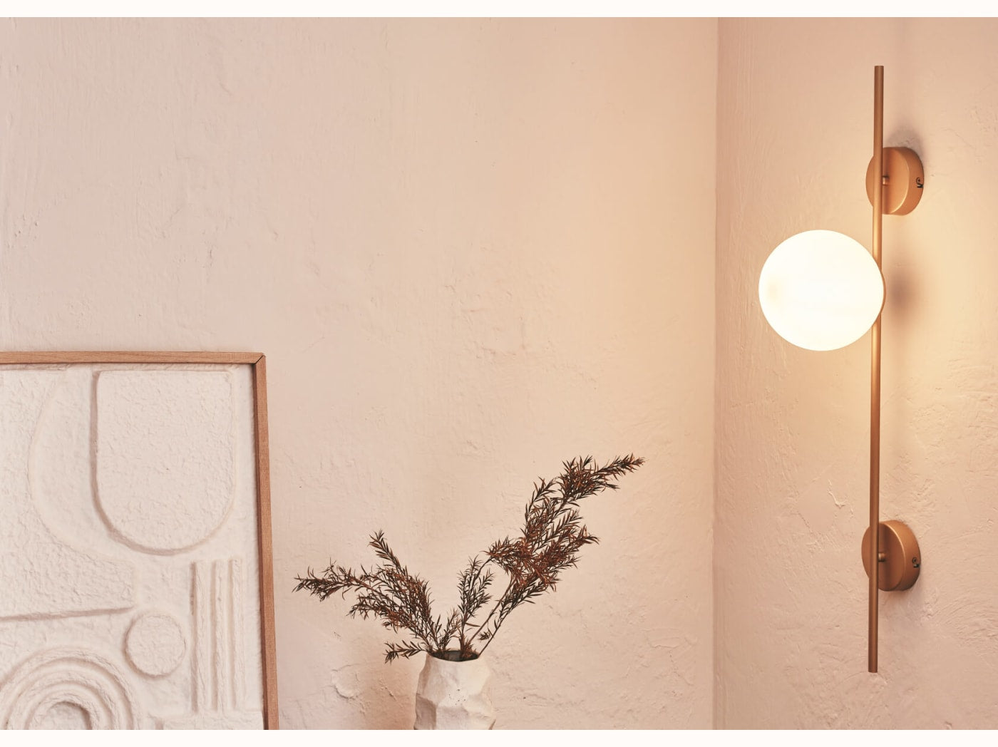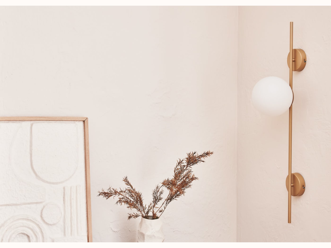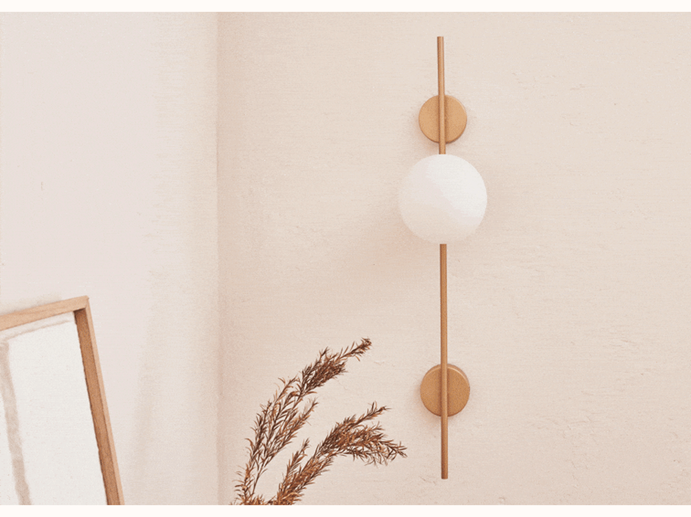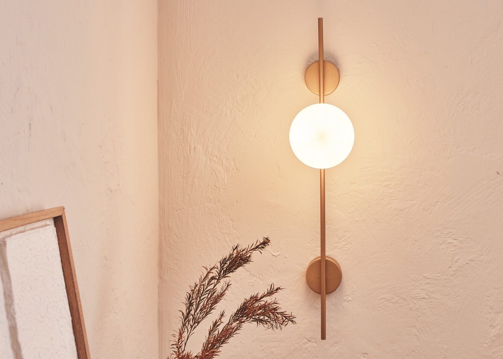 - Structure dorée et globe en verre opale mat.