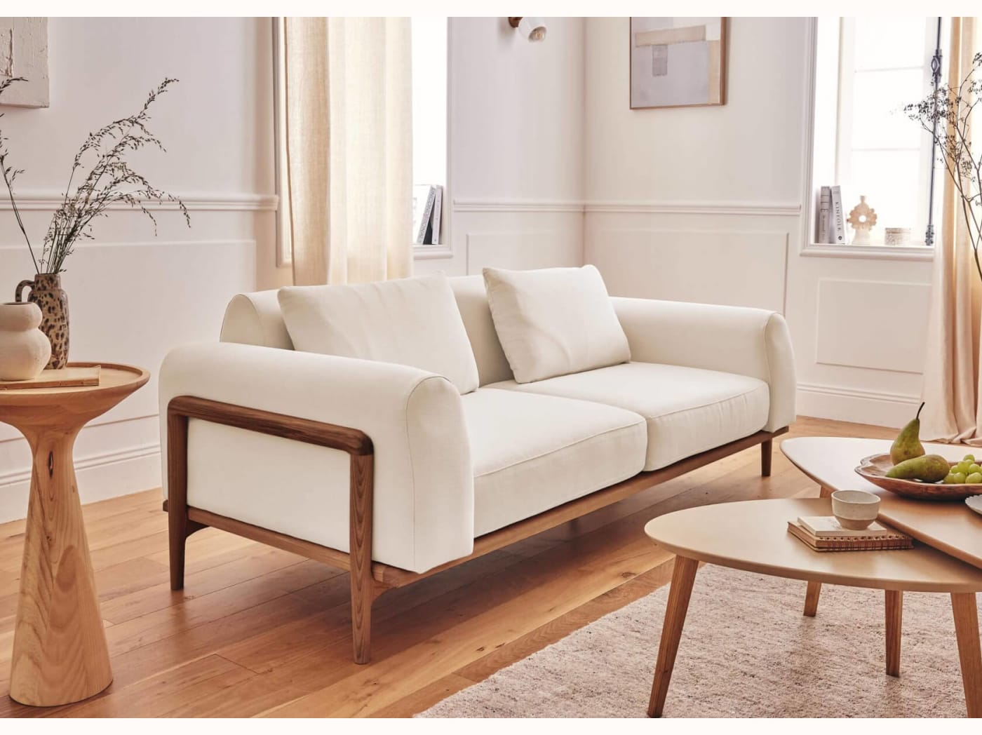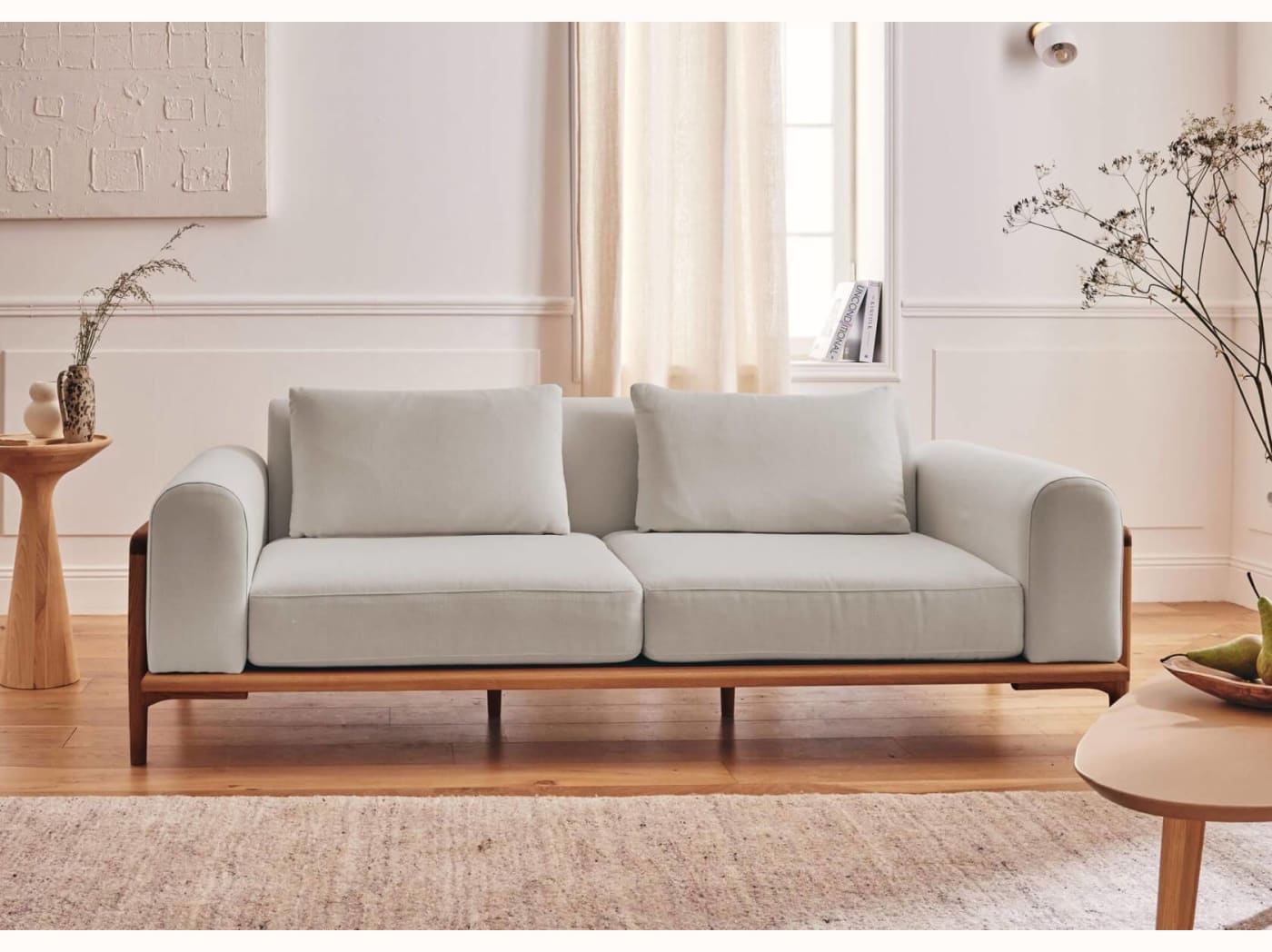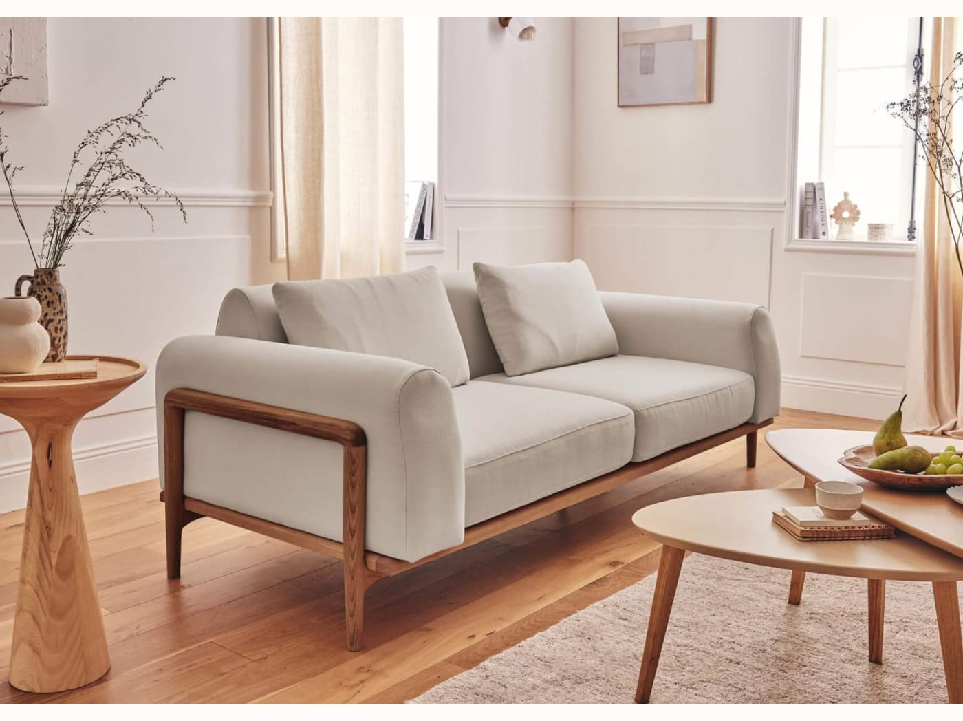 - Un design personnalisable : Canapé 3 places avec 2 couleurs de bois et 4 couleurs de tissus, rien que pour vous.