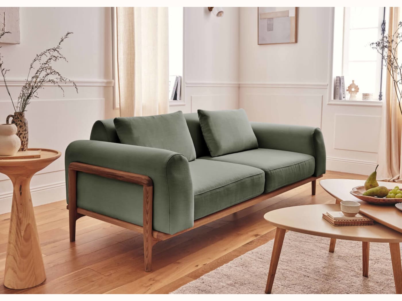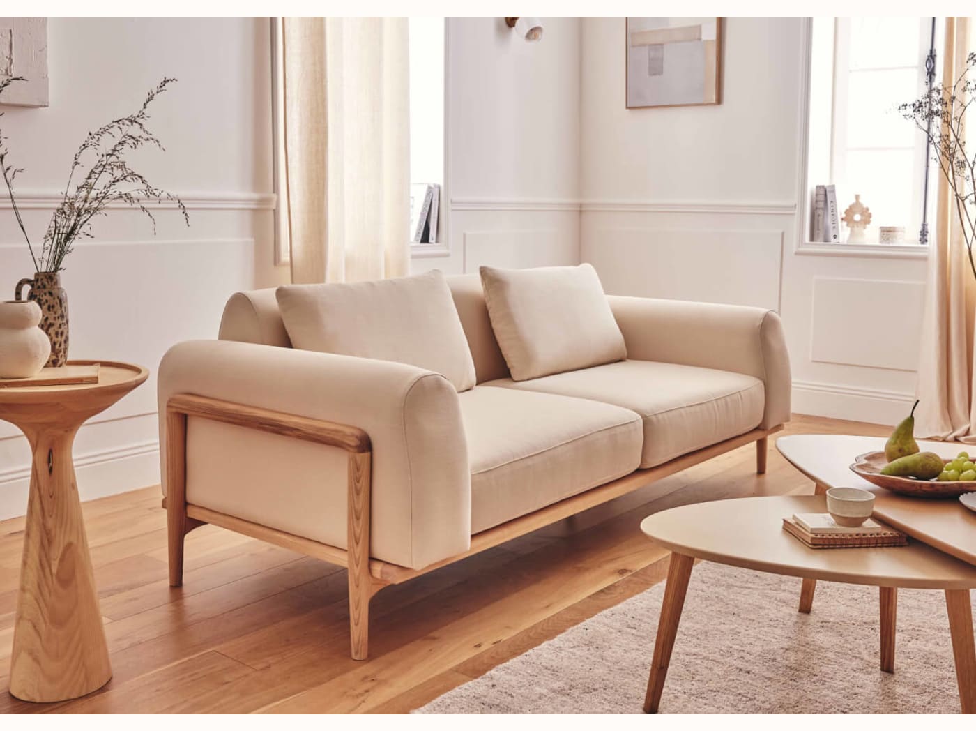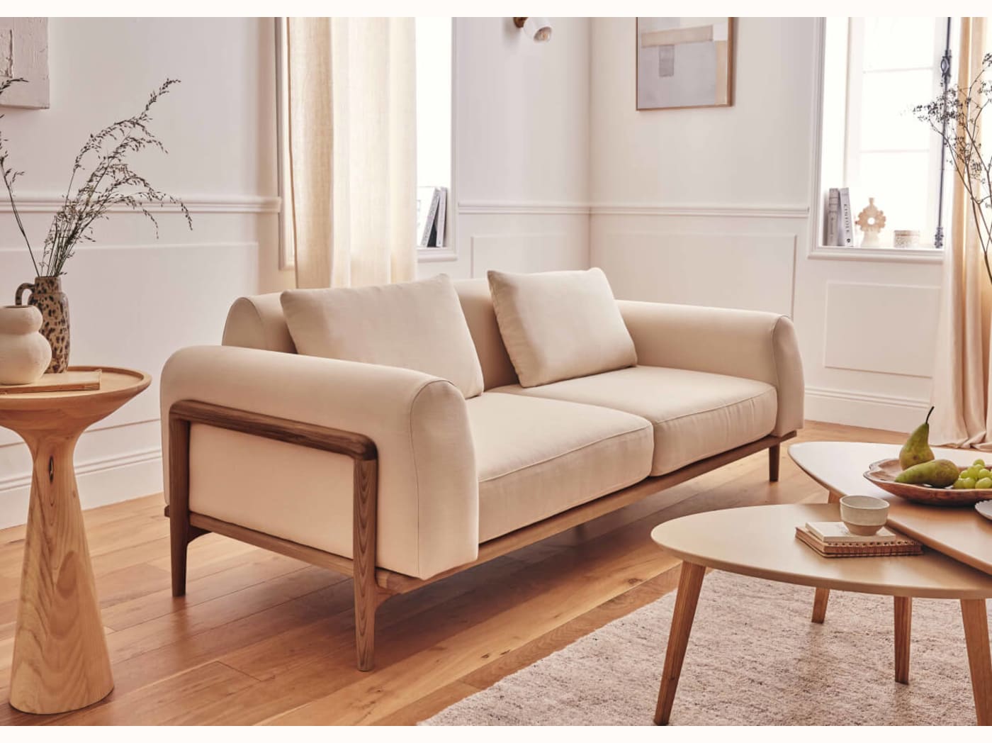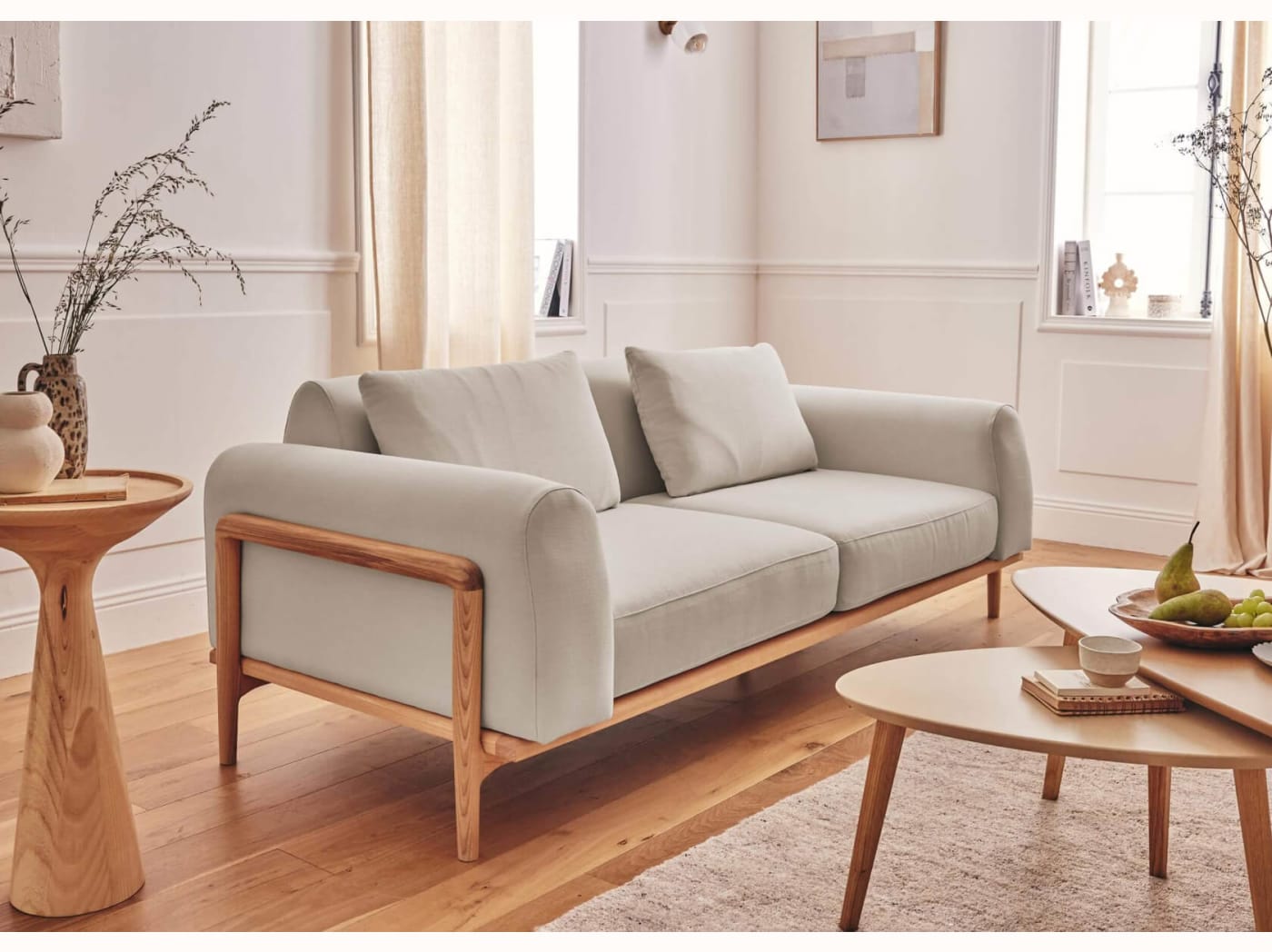 - Un design personnalisable : Canapé 3 places avec 2 couleurs de bois et 4 couleurs de tissus, rien que pour vous.