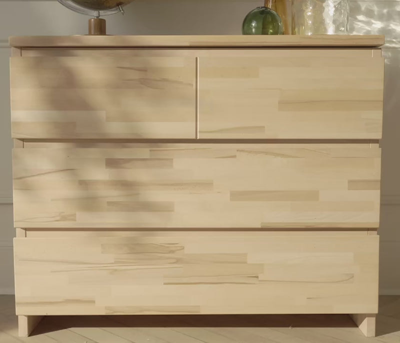 Inspirée par la nature avec son design épuré et intemporel, notre commode AVA en hêtre massif apporte chaleur, authenticité et élégance à vos intérieurs. Réalisée artisanalement en France à proximité des forêts de bois qui la compose, elle témoigne d'une fabrication ultra-locale.