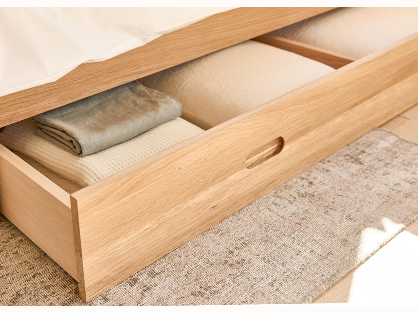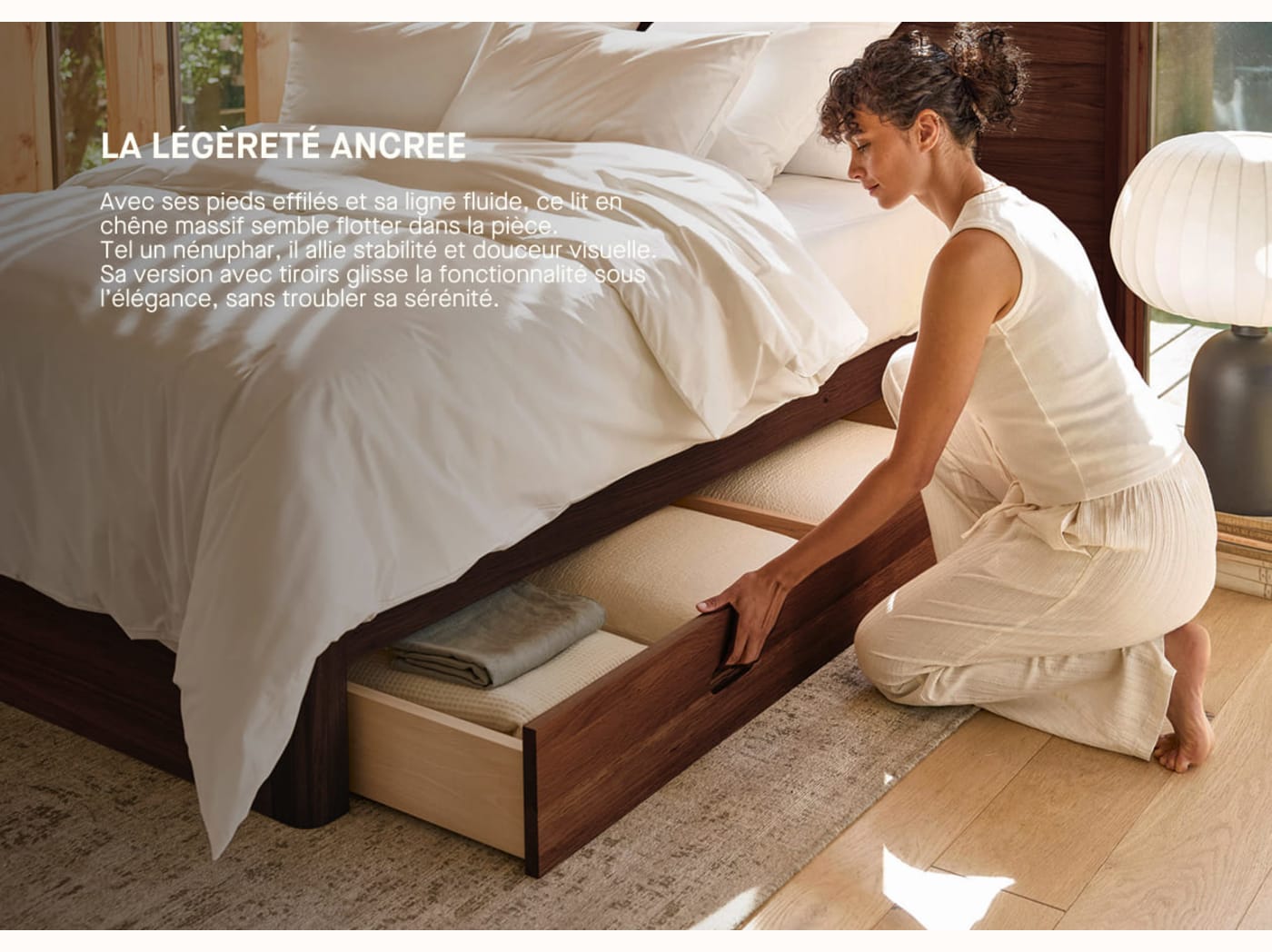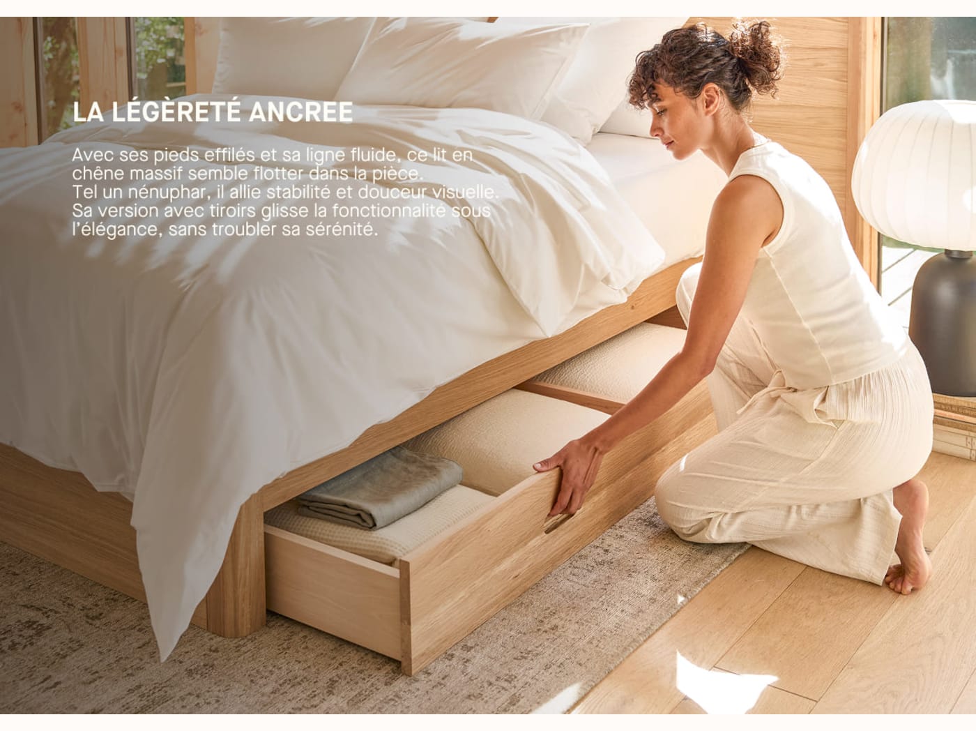 Lit à tiroir en chêne massif NÉNUPHAR