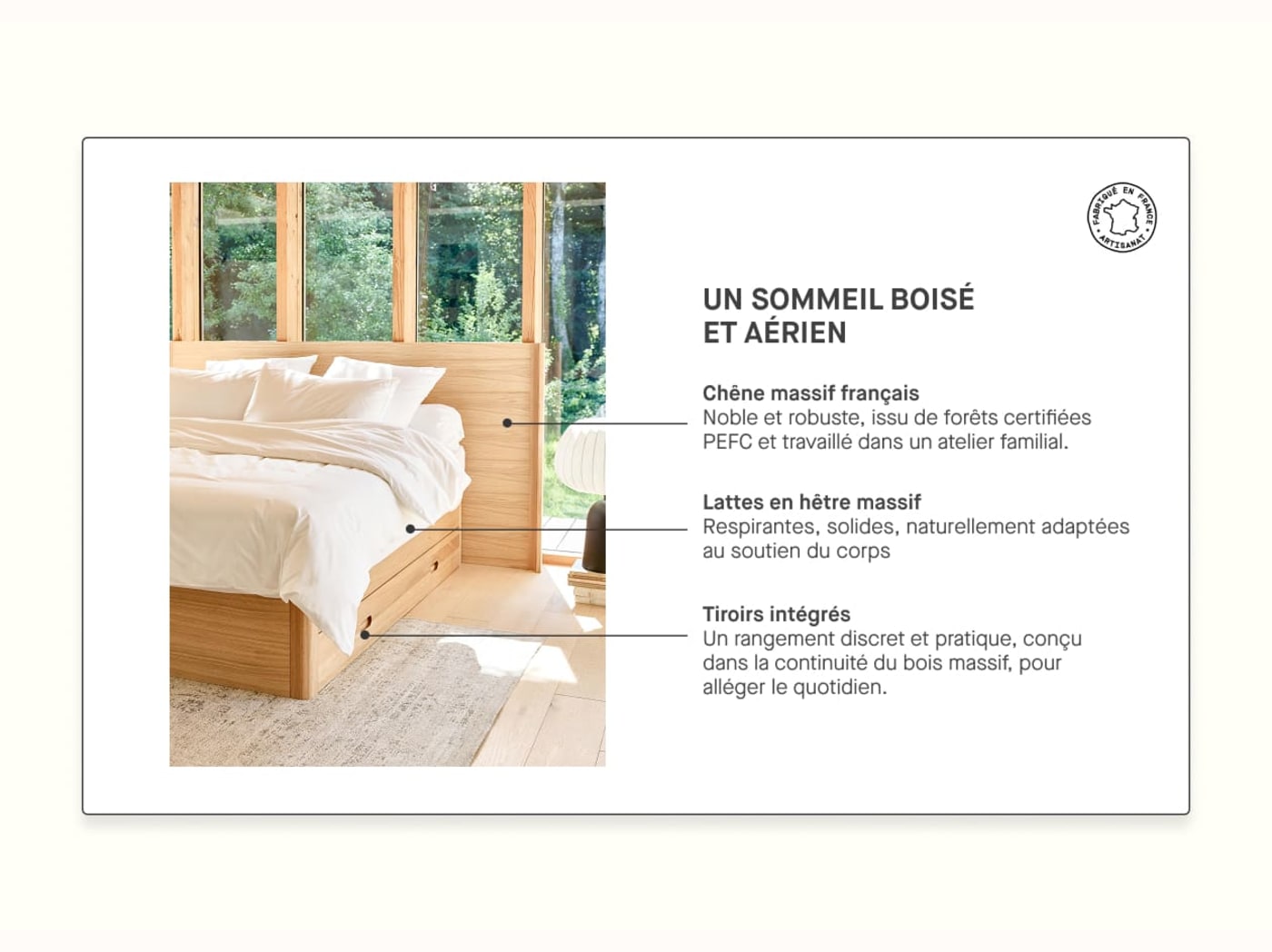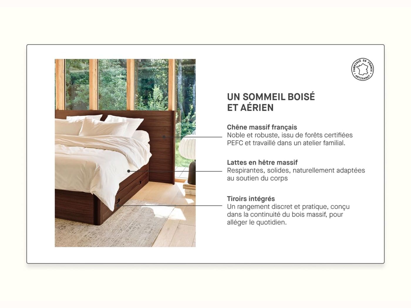 - Bois issu de forêts gérées durablement, certifié PEFC.