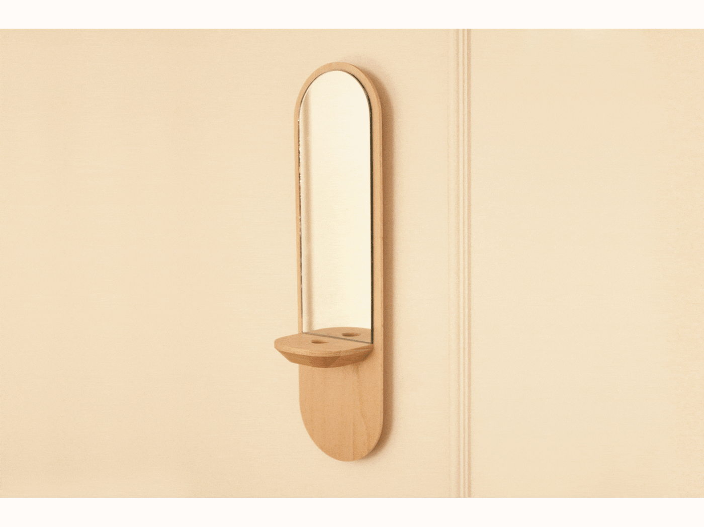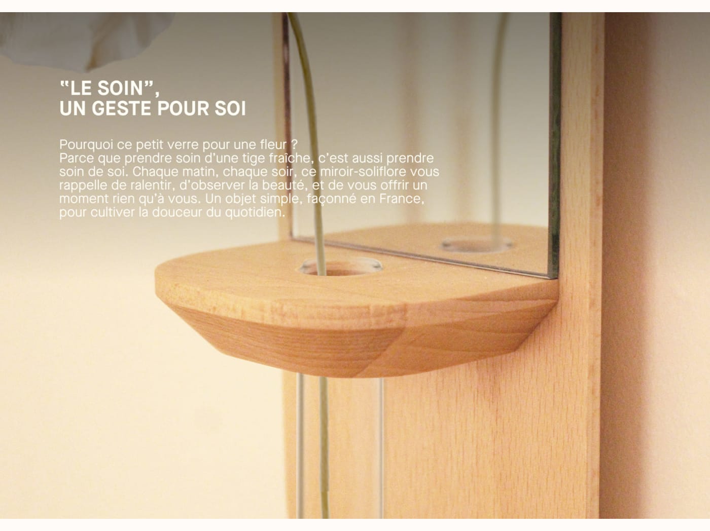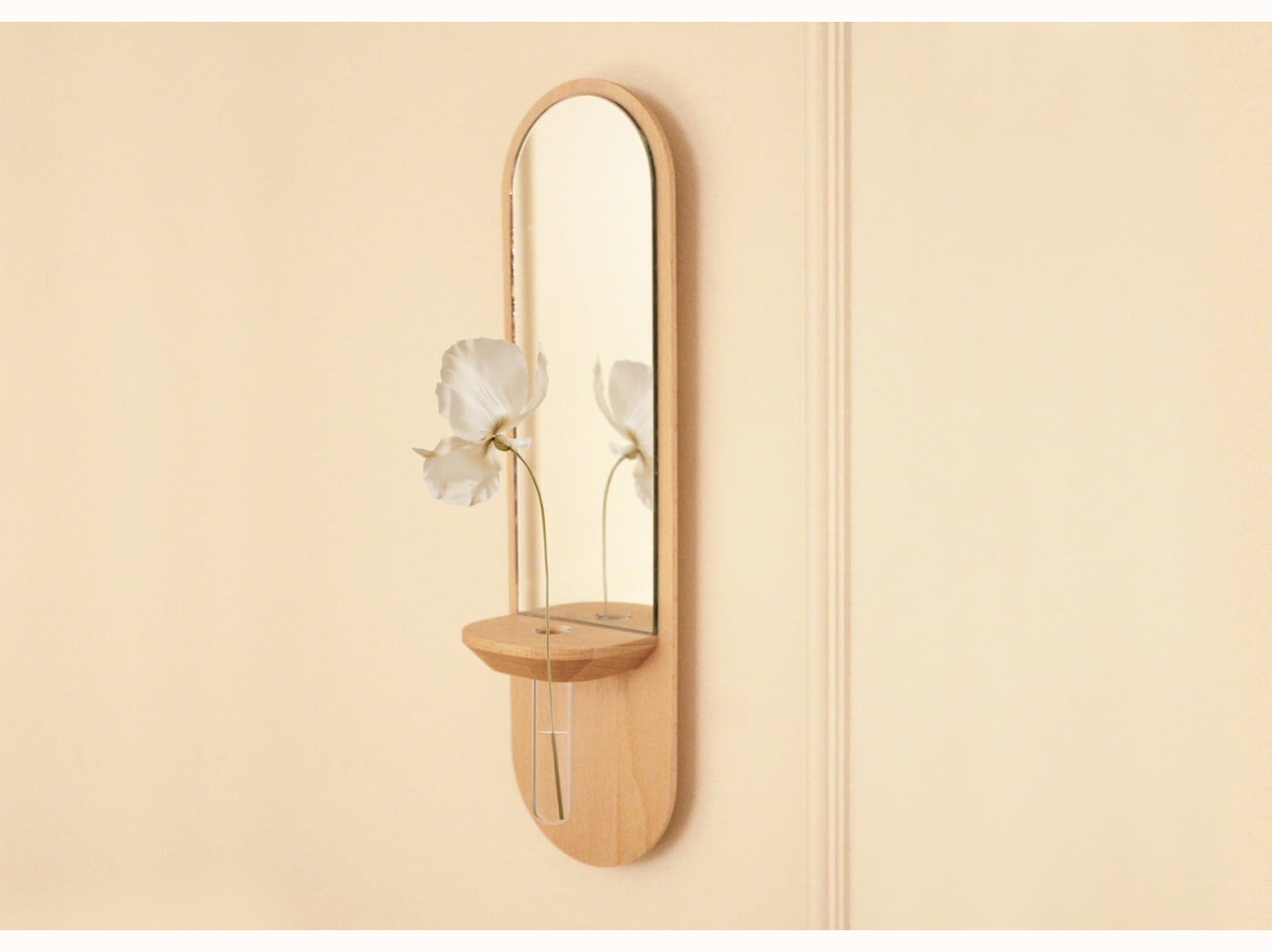 Miroir en hêtre avec Soliflore x Reine Mère - Le soin