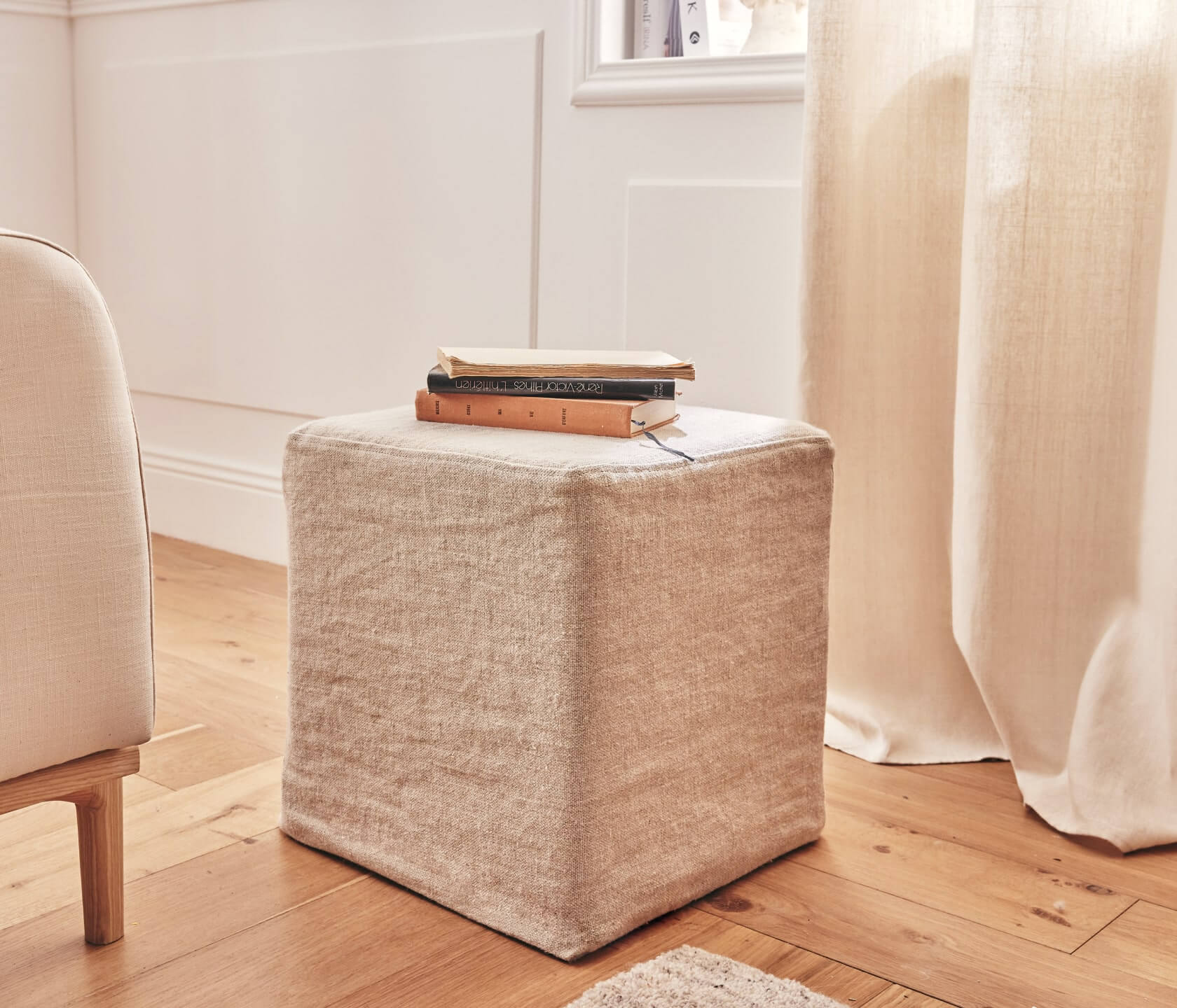 Petit pouf en lin PALM