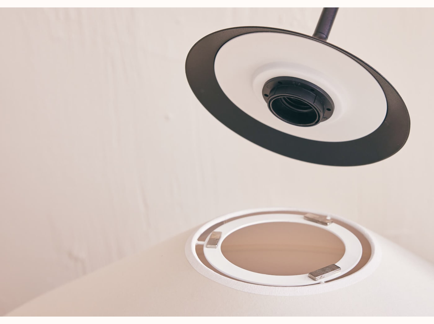- Abat-jour en coton sable et structure noire
