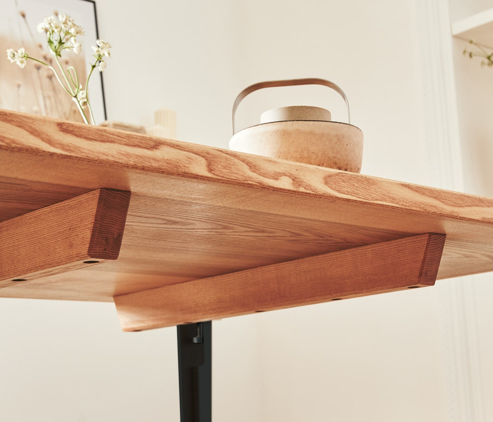 - Durable et résistante : Plateau en frêne massif et pieds en acier