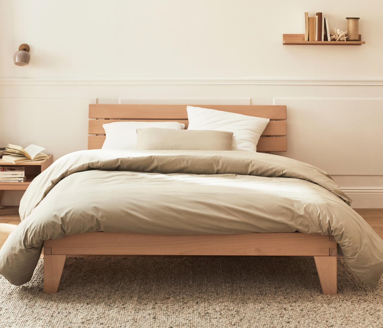 La tête de lit offre un bel habillage à votre sommier Normandie. Comme l’ensemble du cadre de lit, le bois utilisé est également certifié PEFC.